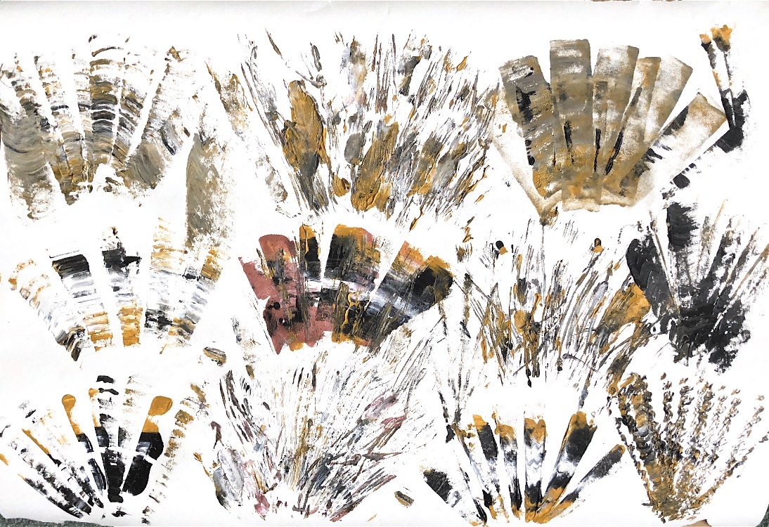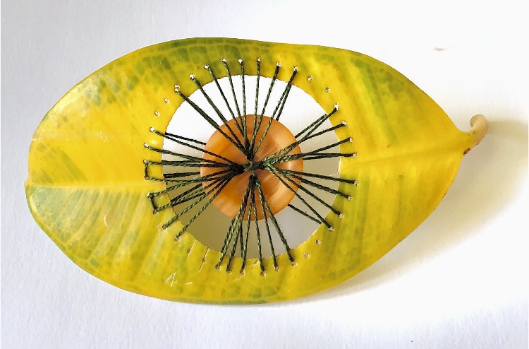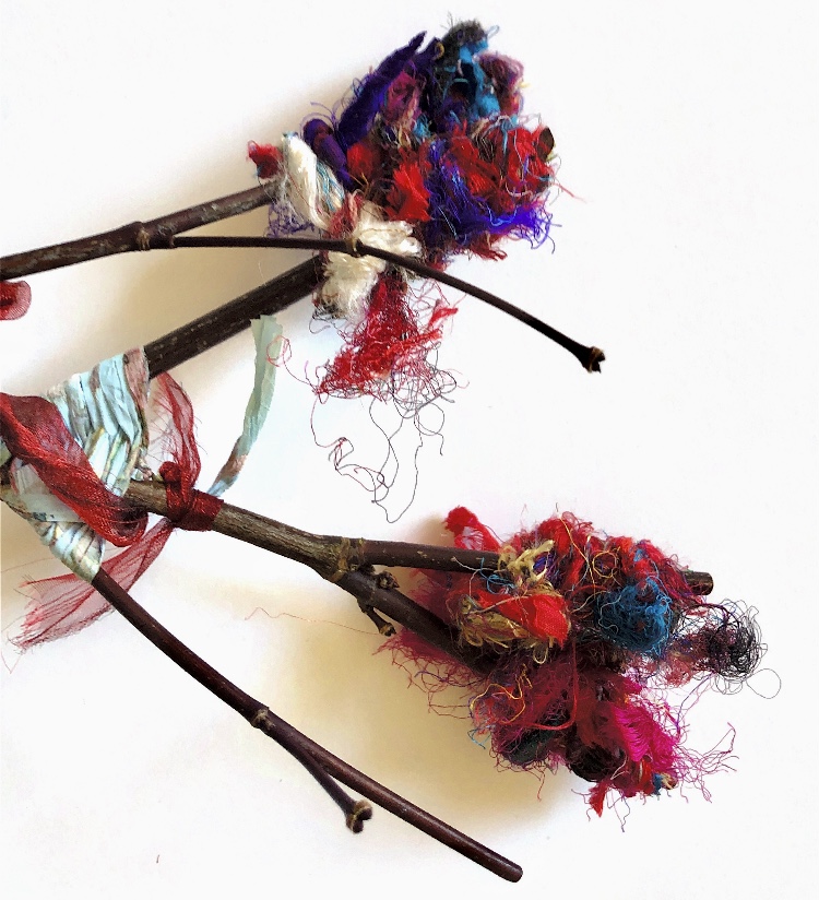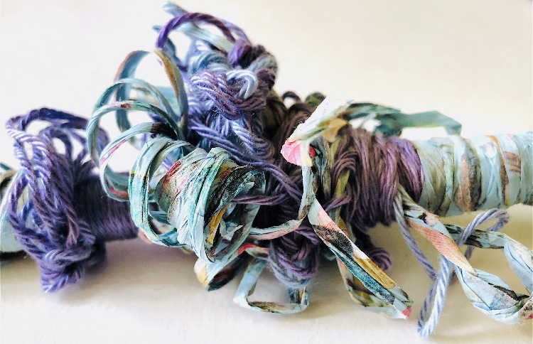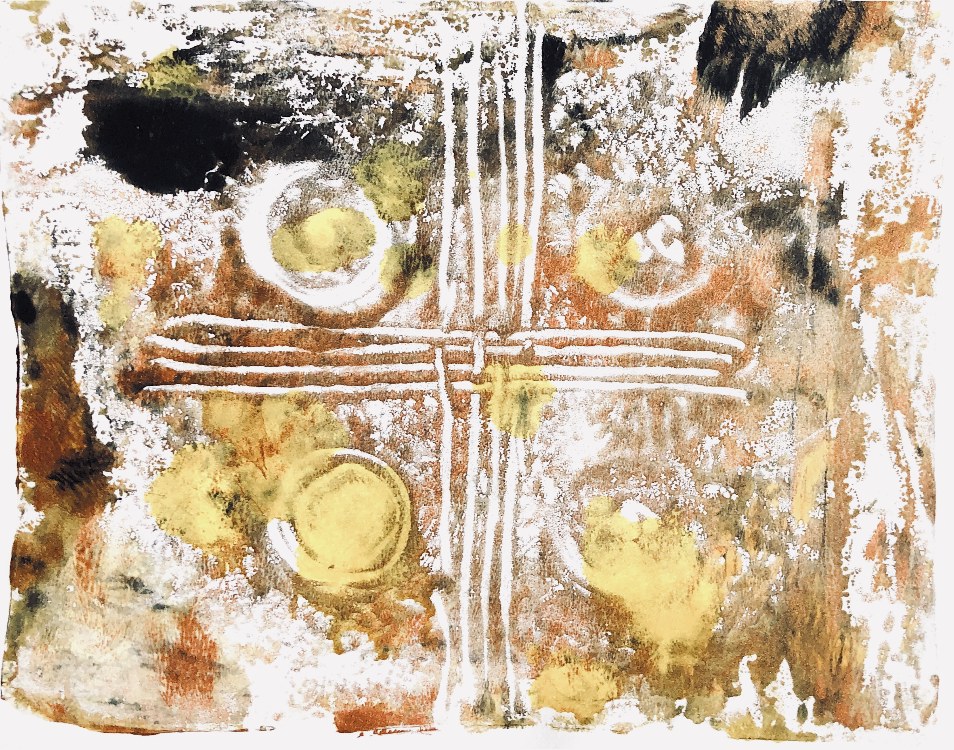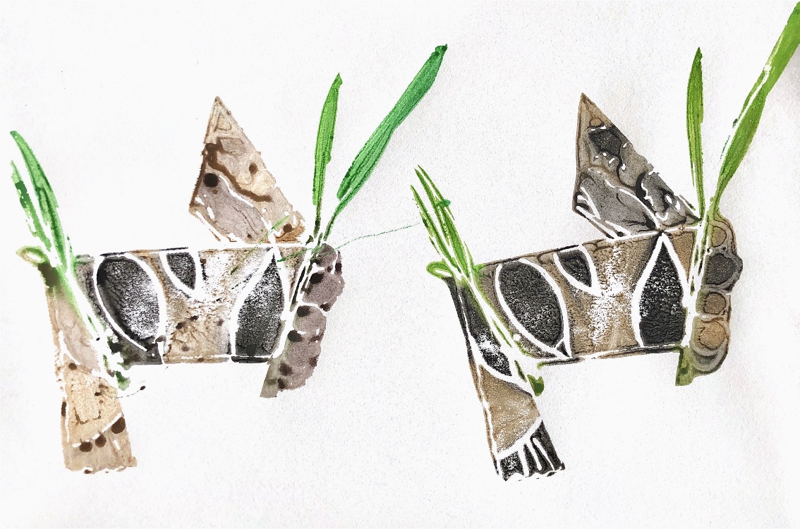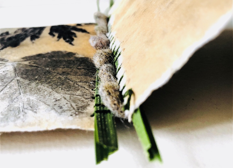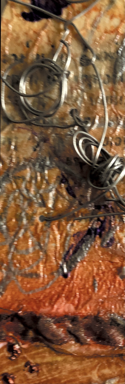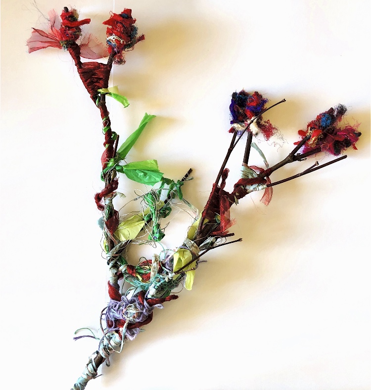 Collage papers painted. Squares cut out – hand and machine stitched.