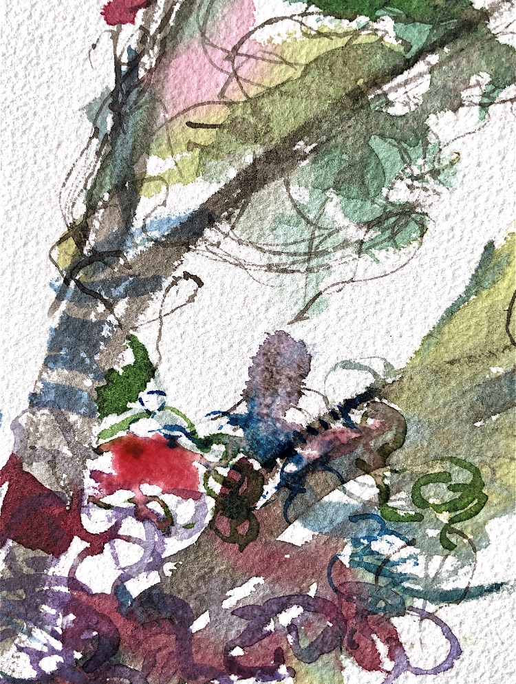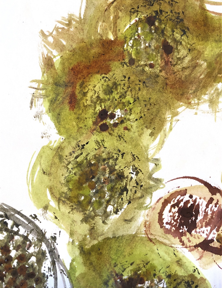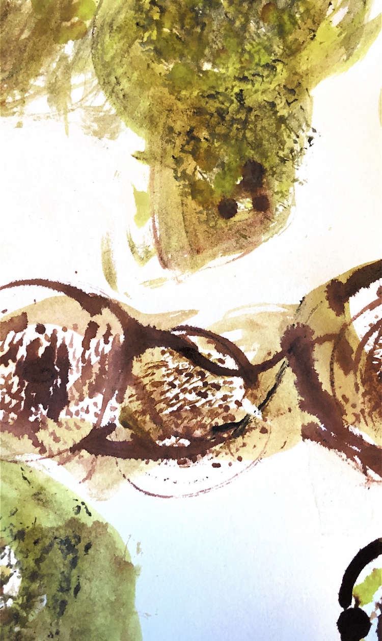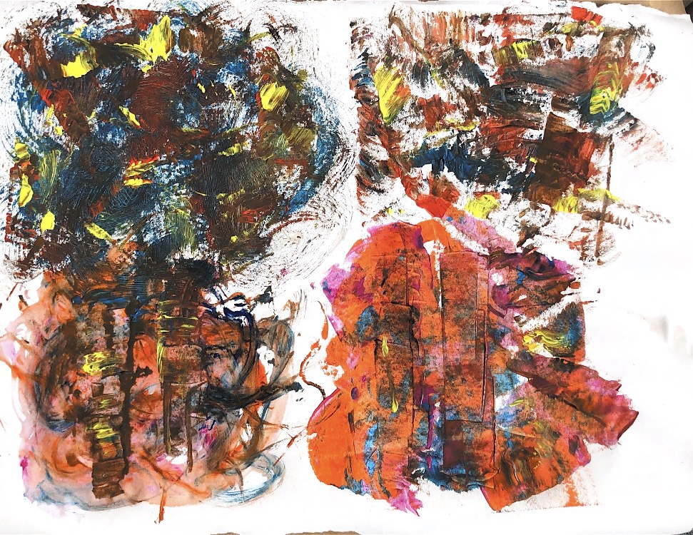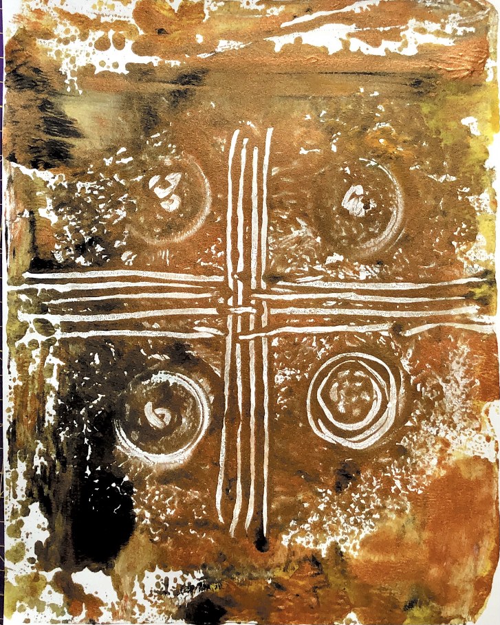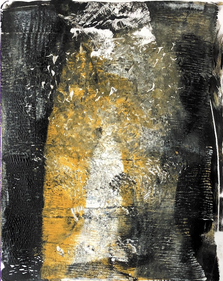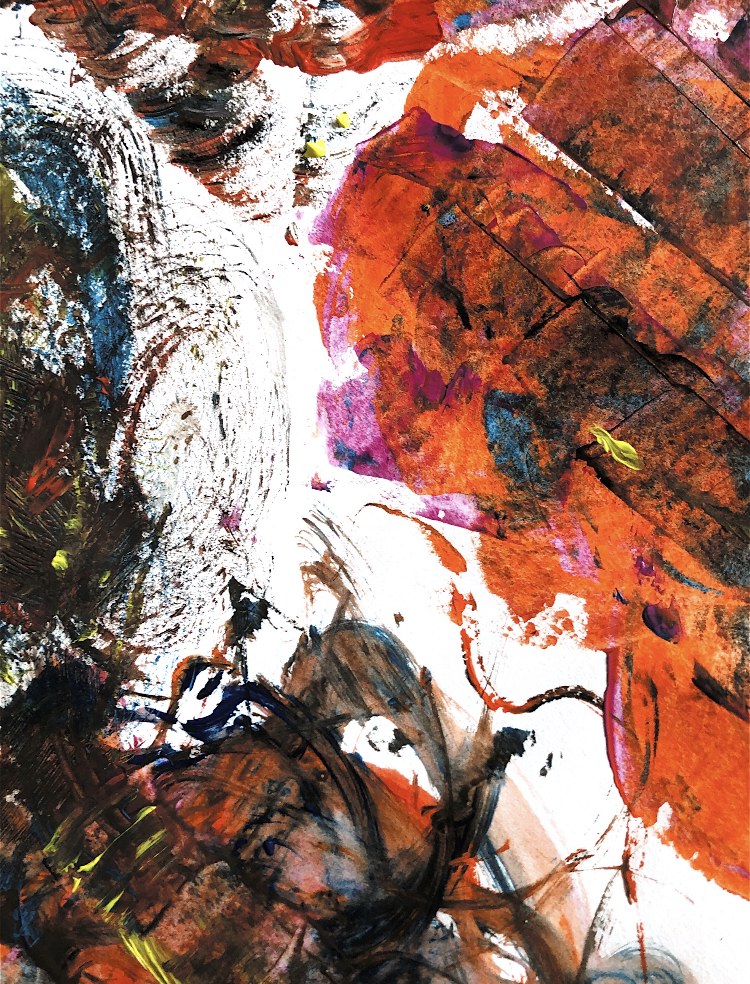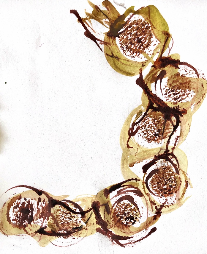 Collage papers painted. Squares cut out – hand and machine stitched.