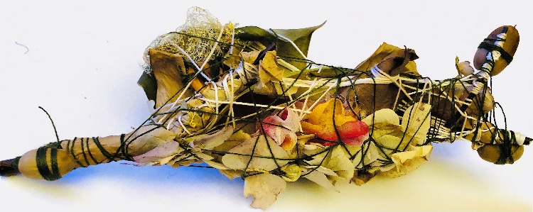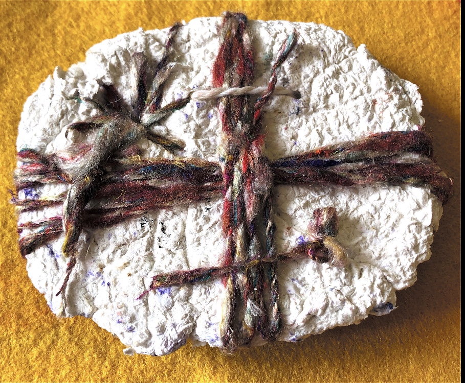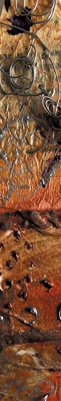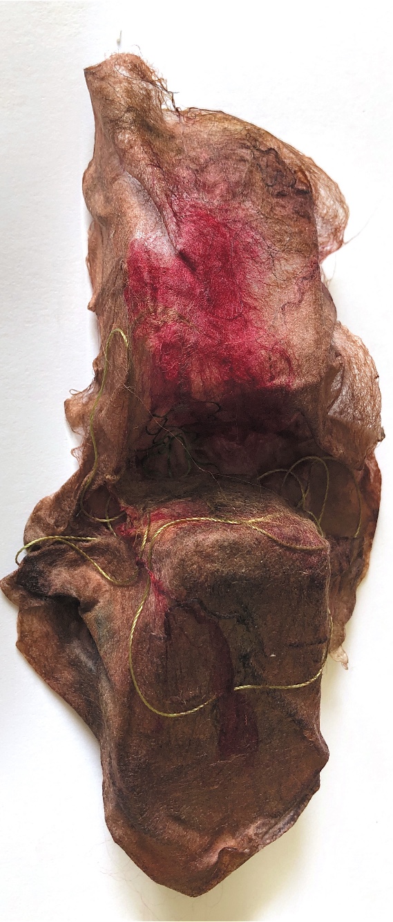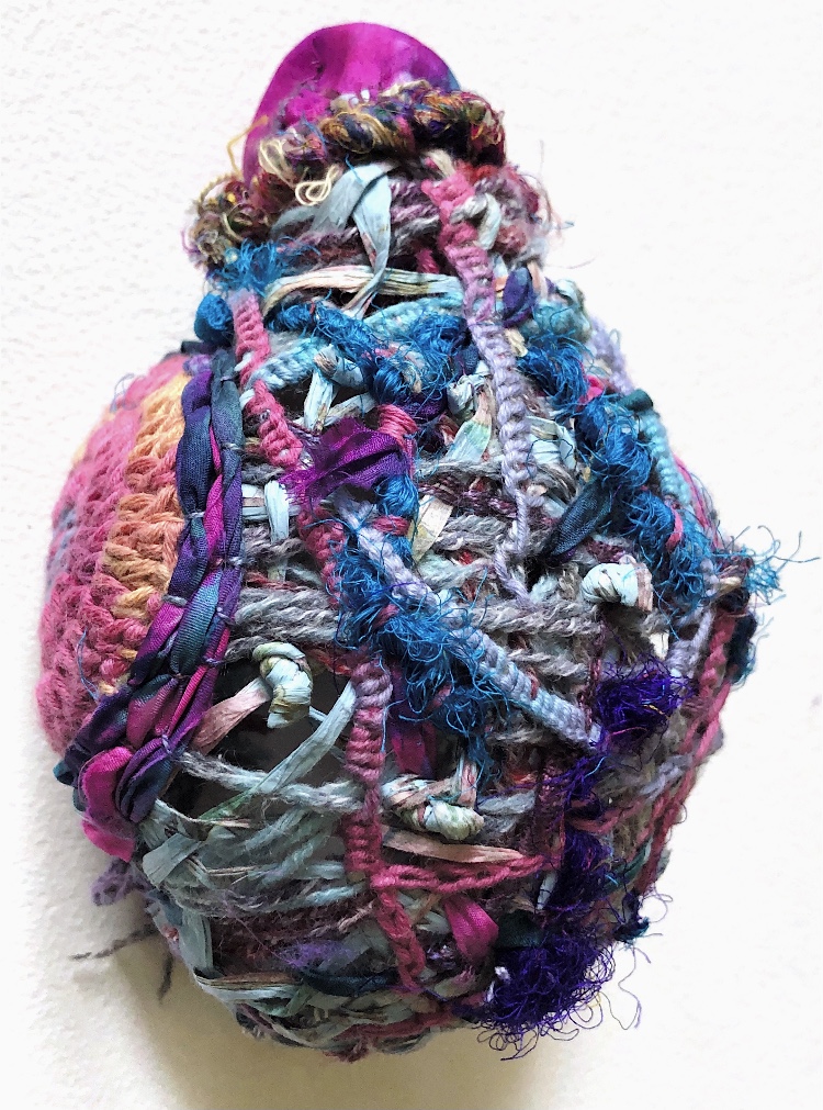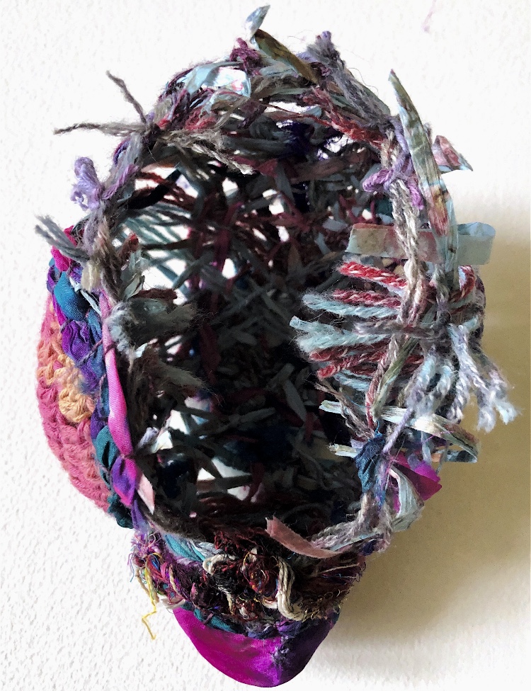 Fig 1. Pyramid mold. For this sample I was inspired by the pictures and samples of barbed wire with fibres caught on the barbs. I used wire and jewellery findings together with silk fibres and wax crayon melted and shaved to give colour. Every facet gives a different view. The orange colour works well as a contrast to the wire.