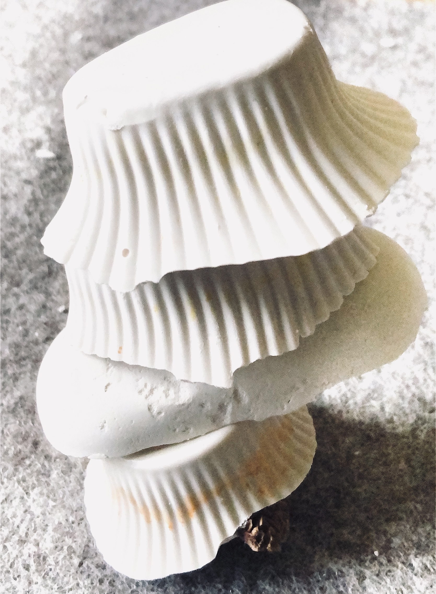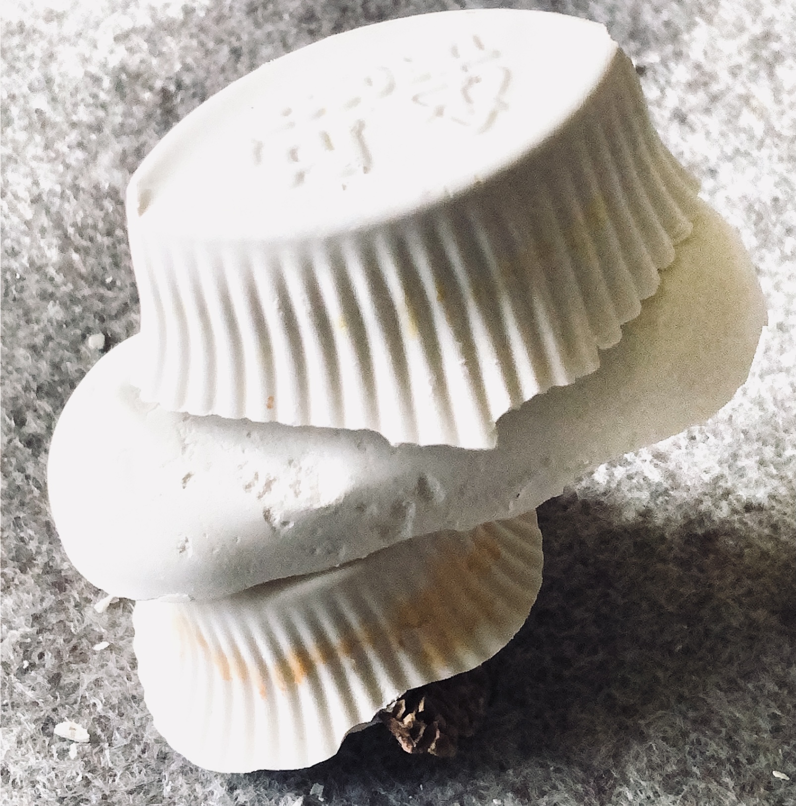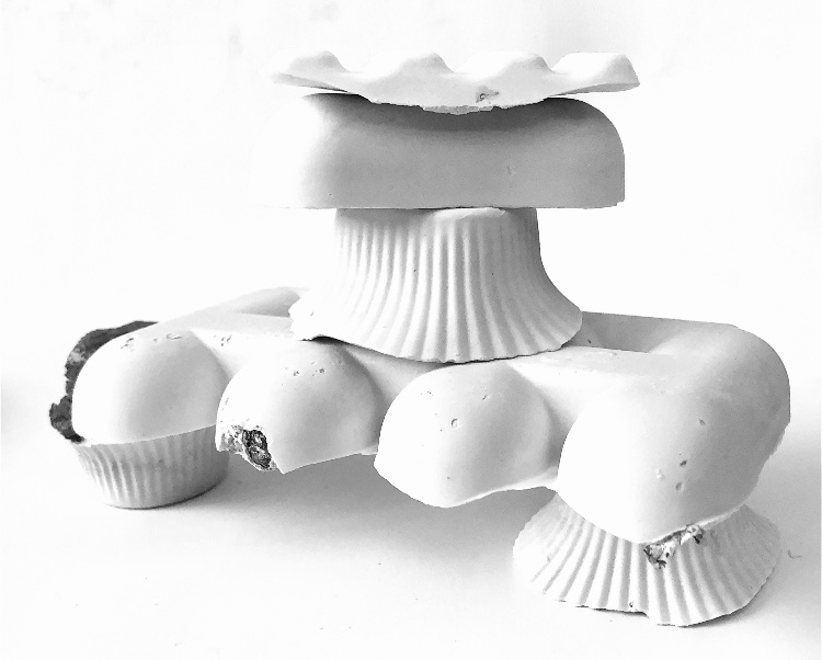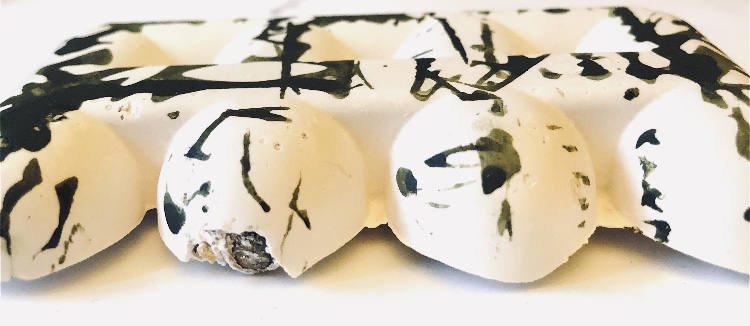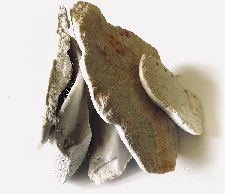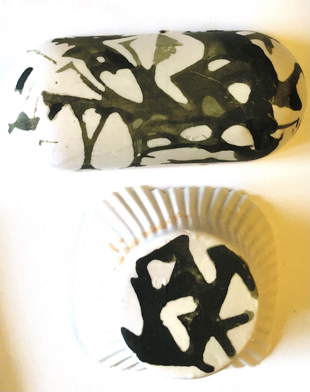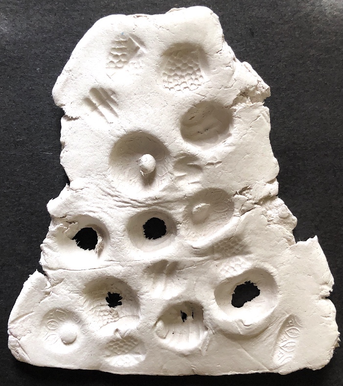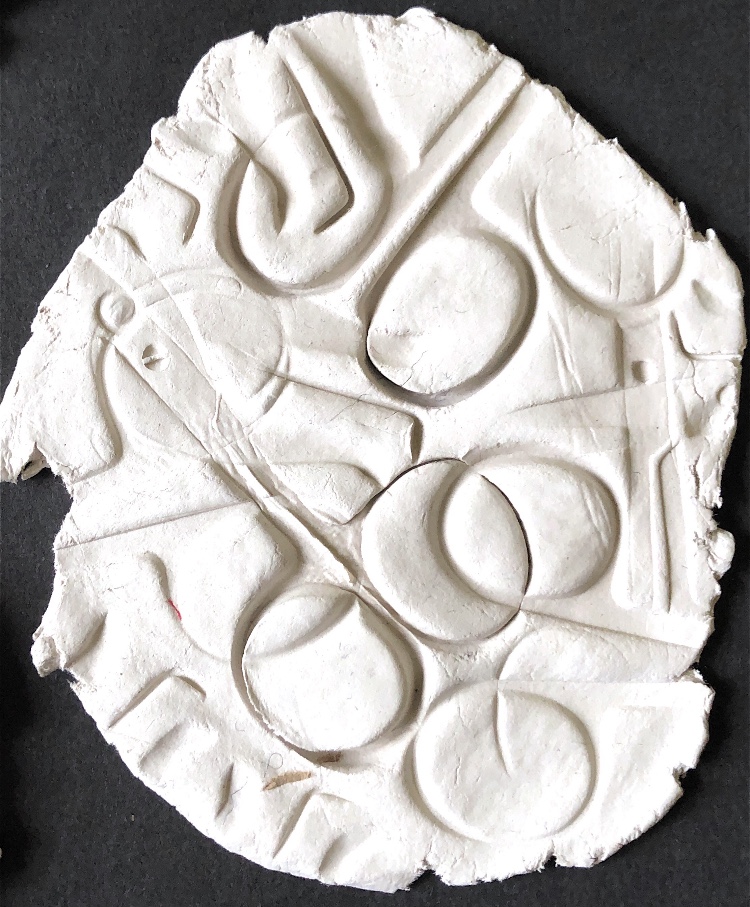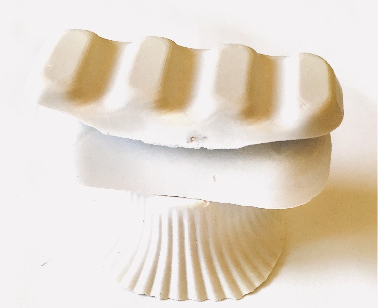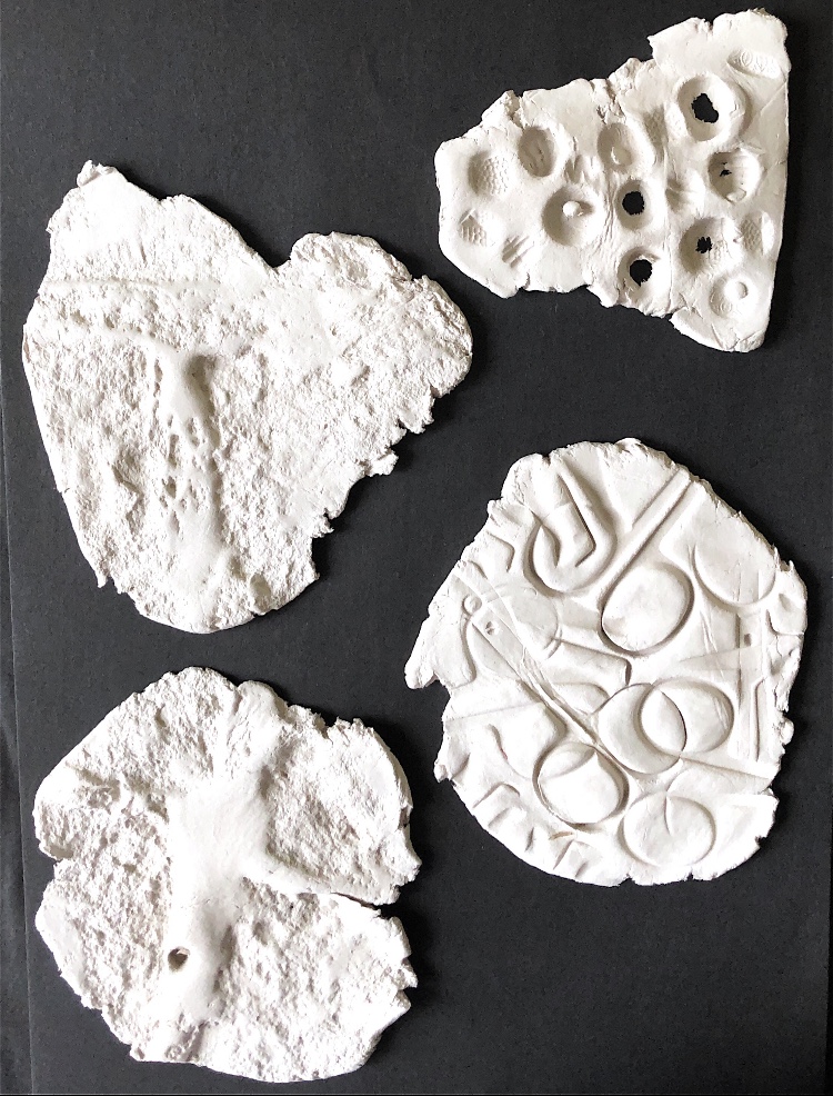 It was a long wait (24 hours) before I could remove the samples from the mold and hold them in my hands to view from all angles. They are satisfyingly smooth and heavy, but I deliberately left one side with protruding objects for a contrast. There are bubbles in the resin but I rather like the idea that the objects have been submerged and captured in a moment in time with bubbles rising from this action. It feels natural.