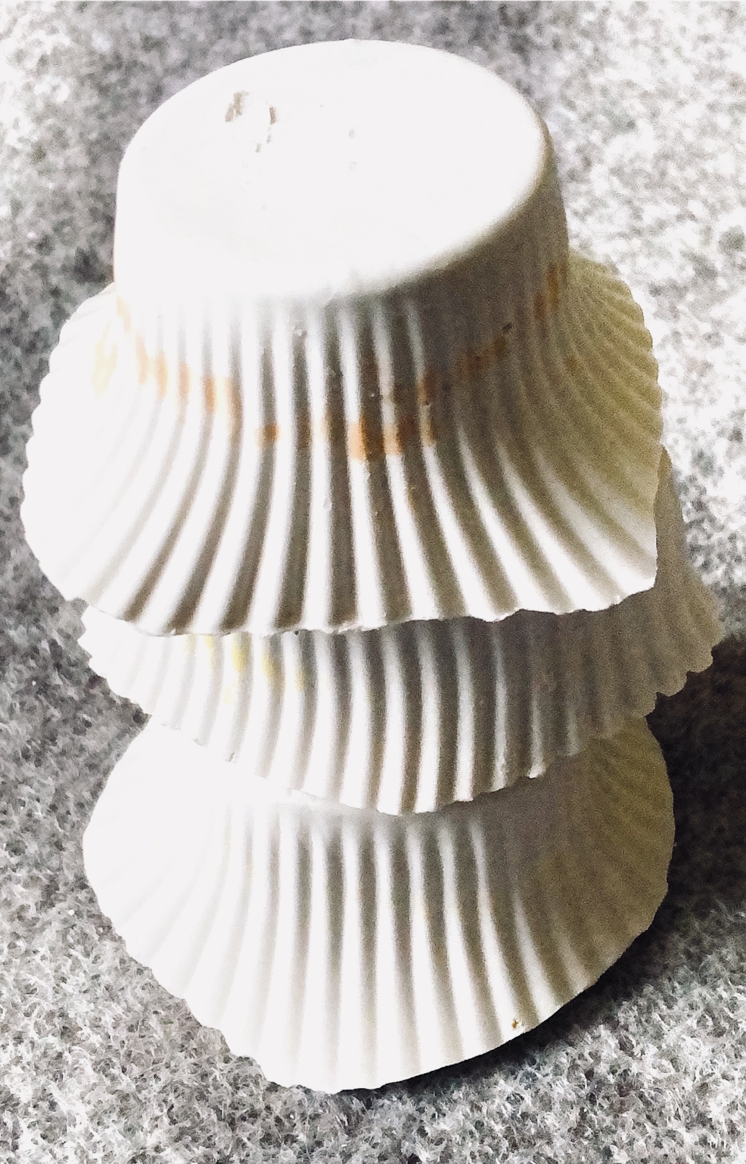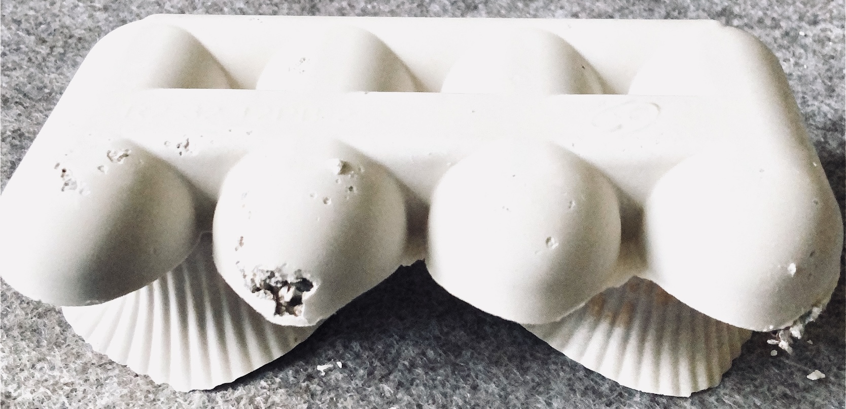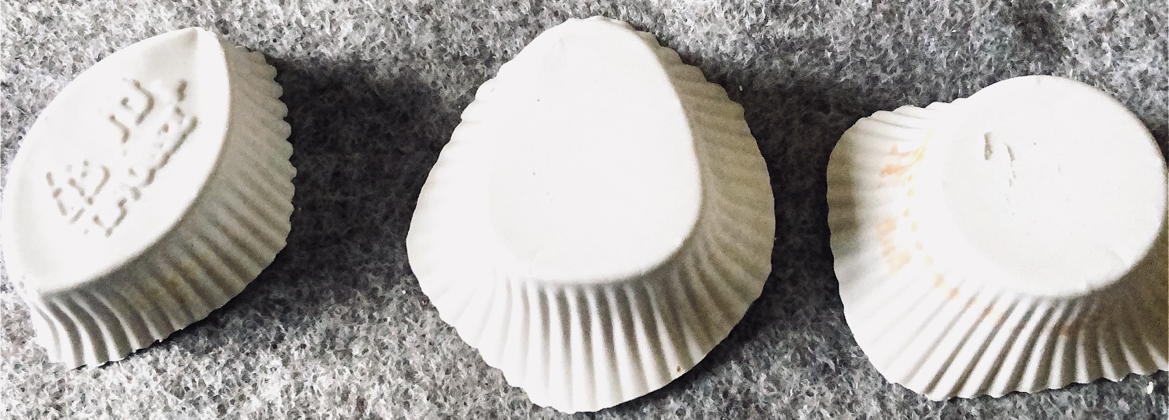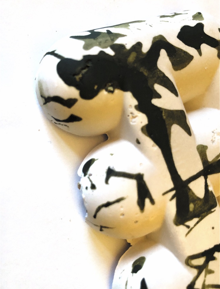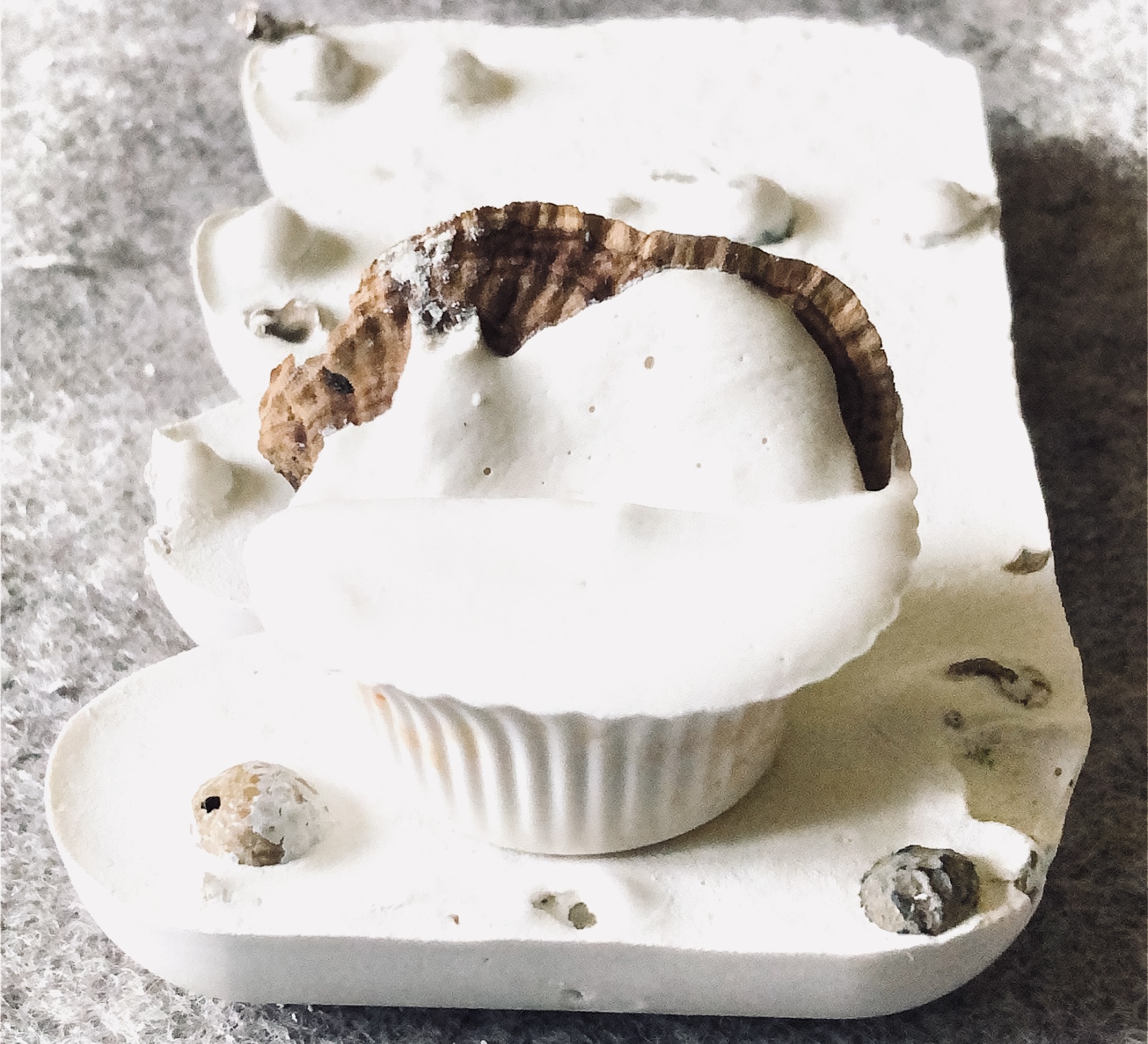 It was a long wait (24 hours) before I could remove the samples from the mold and hold them in my hands to view from all angles. They are satisfyingly smooth and heavy, but I deliberately left one side with protruding objects for a contrast. There are bubbles in the resin but I rather like the idea that the objects have been submerged and captured in a moment in time with bubbles rising from this action. It feels natural.