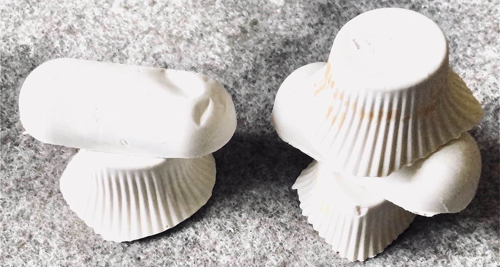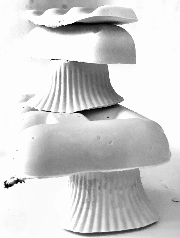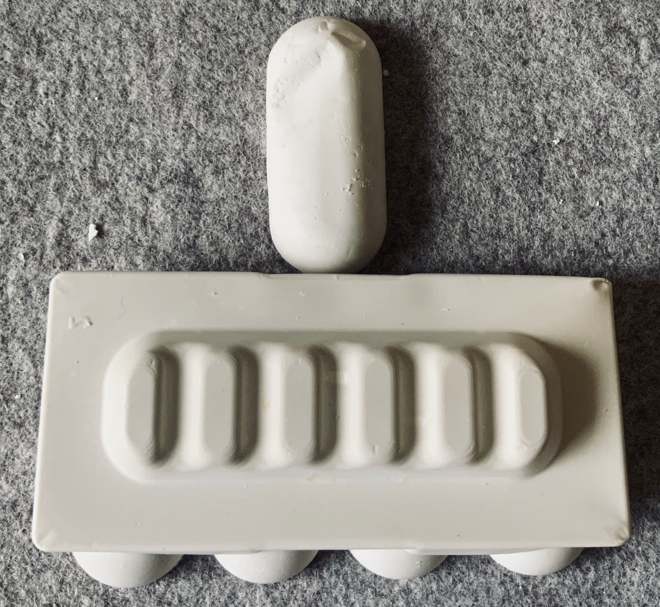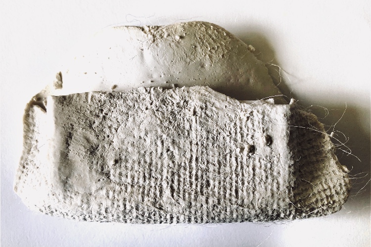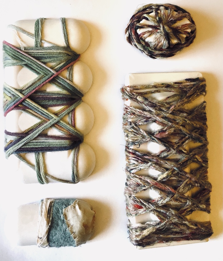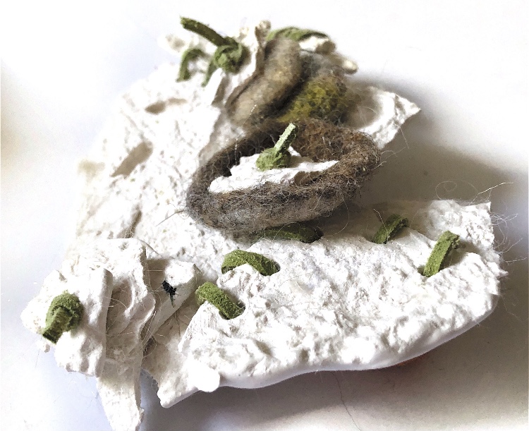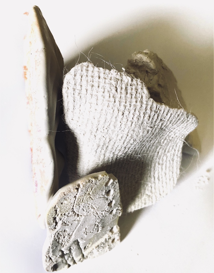 I wanted to incorporate objects and ideas from my previous sampling (plaster, felt pebble and plaster stacks, plaster shapes, latex shapes, silk fibres).