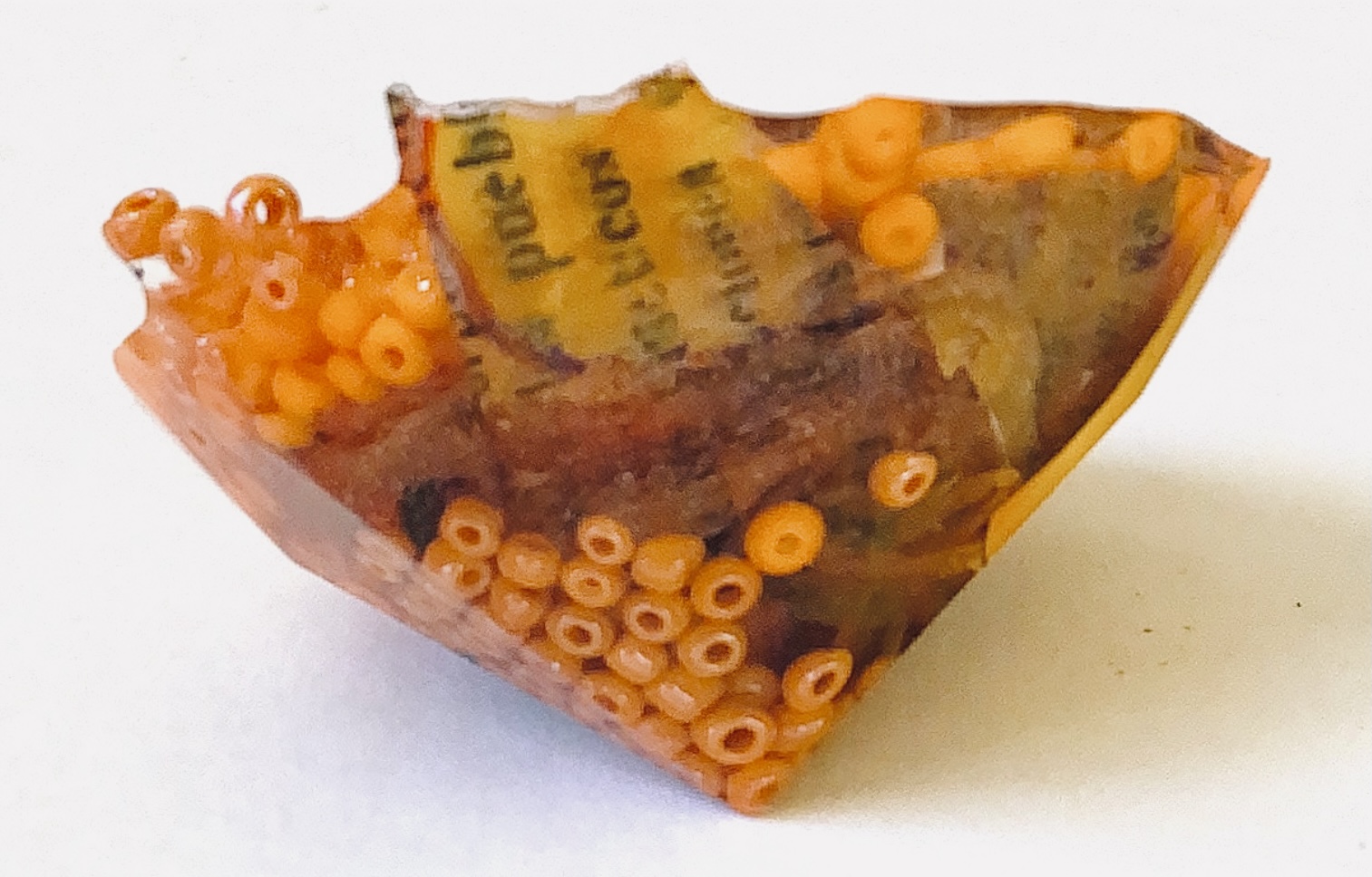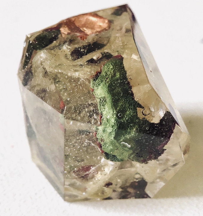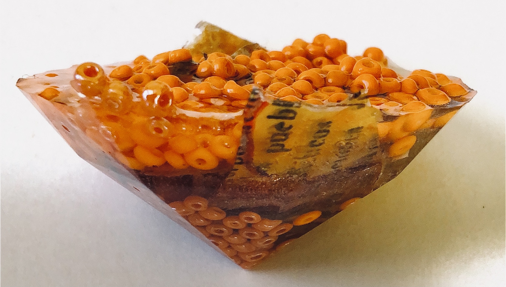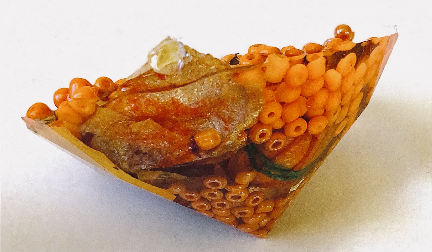 What an amazing material – making 3d objects that encourage the viewer to look at what is encased in a different way. It enables lots of materials to be put together in a microcosm. The materials are suspended in time and space. Light travels through the pieces and is also reflected by the facets and materials inside.,