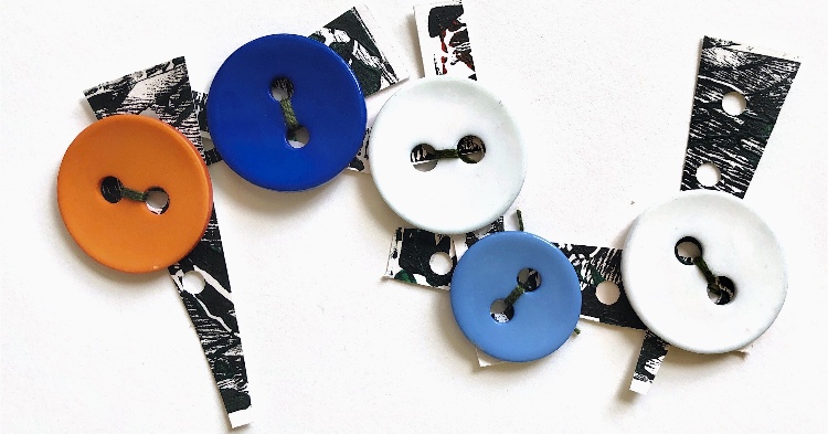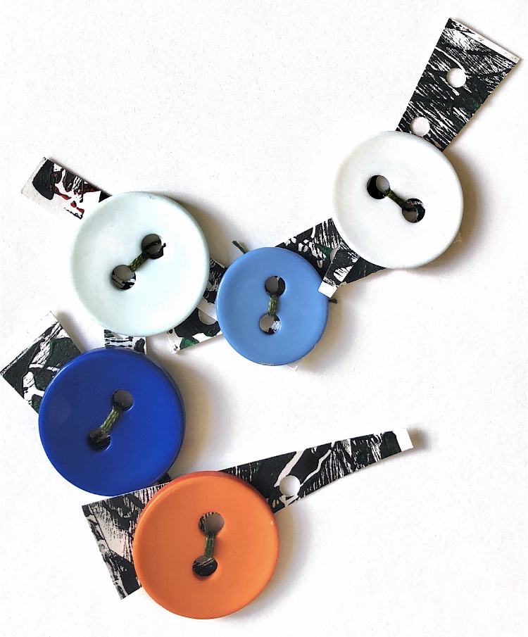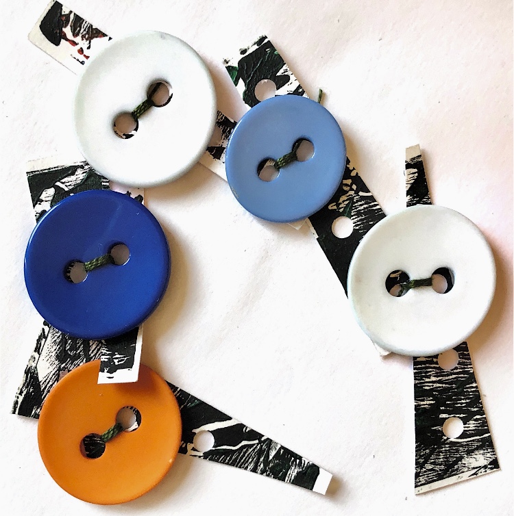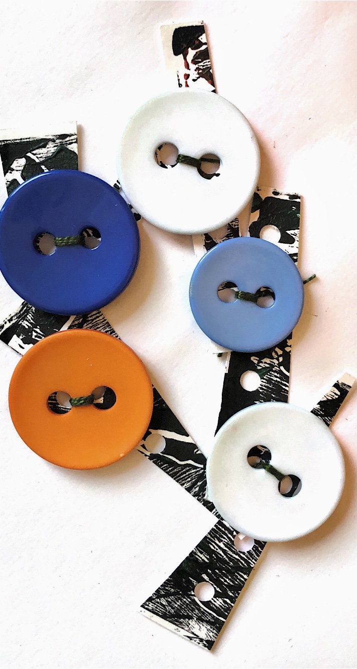 Methods and materials used to join – glue, paper fastener, hand sewn buttons, wrapped embroidery thread, machine stitching