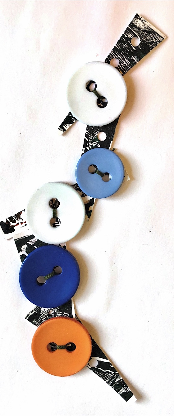 For the following sample I used heavy paper into which holes were punched. Buttons were stitched on using the holes and the resulting piece can be changed into many shapes, all containing multiple angles.