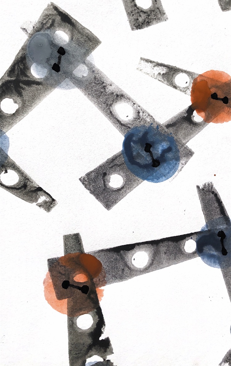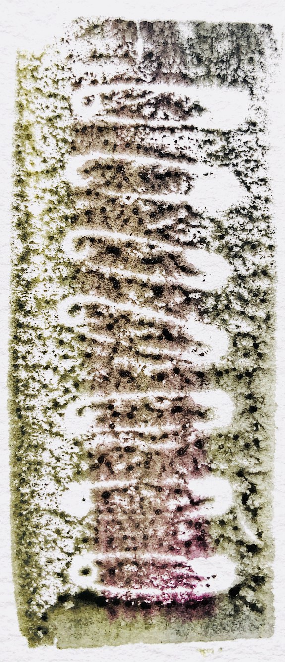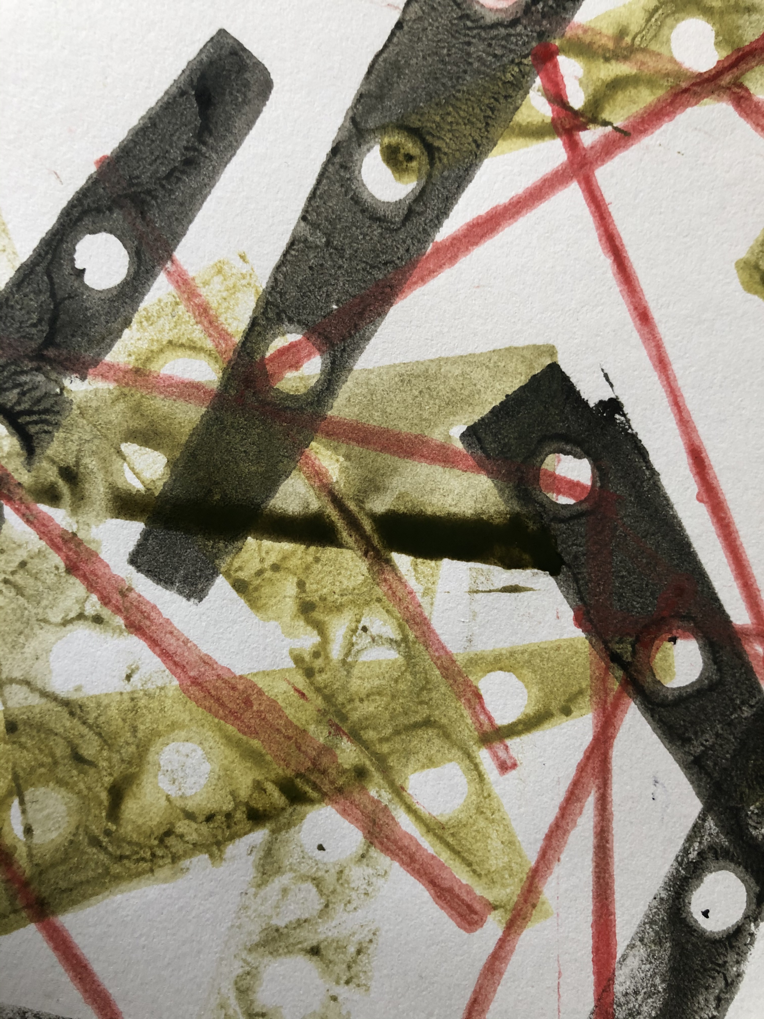 Printing on watercolour paper, repeated images and partial prints.