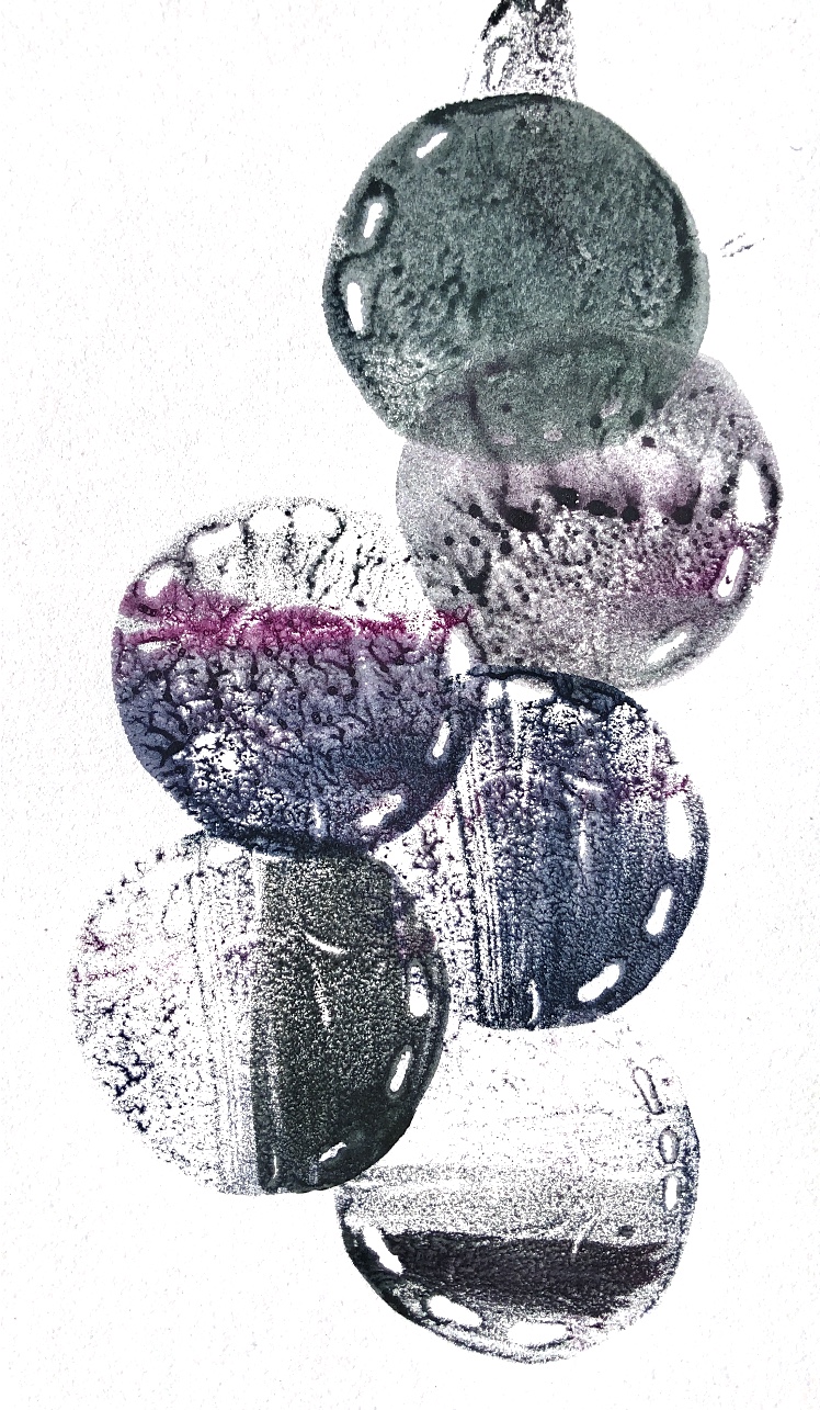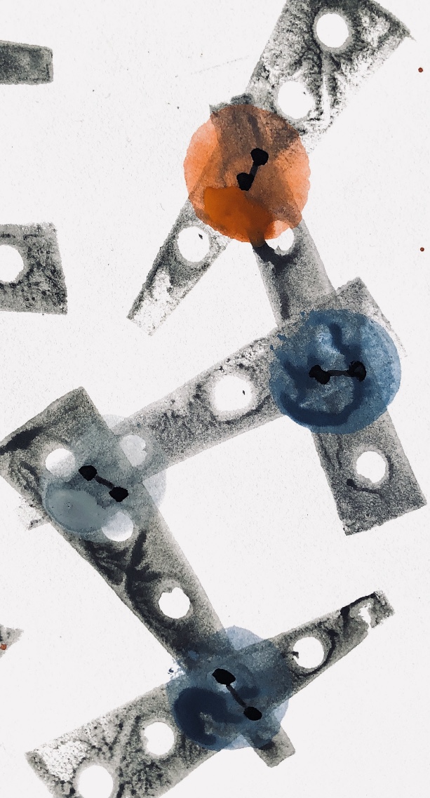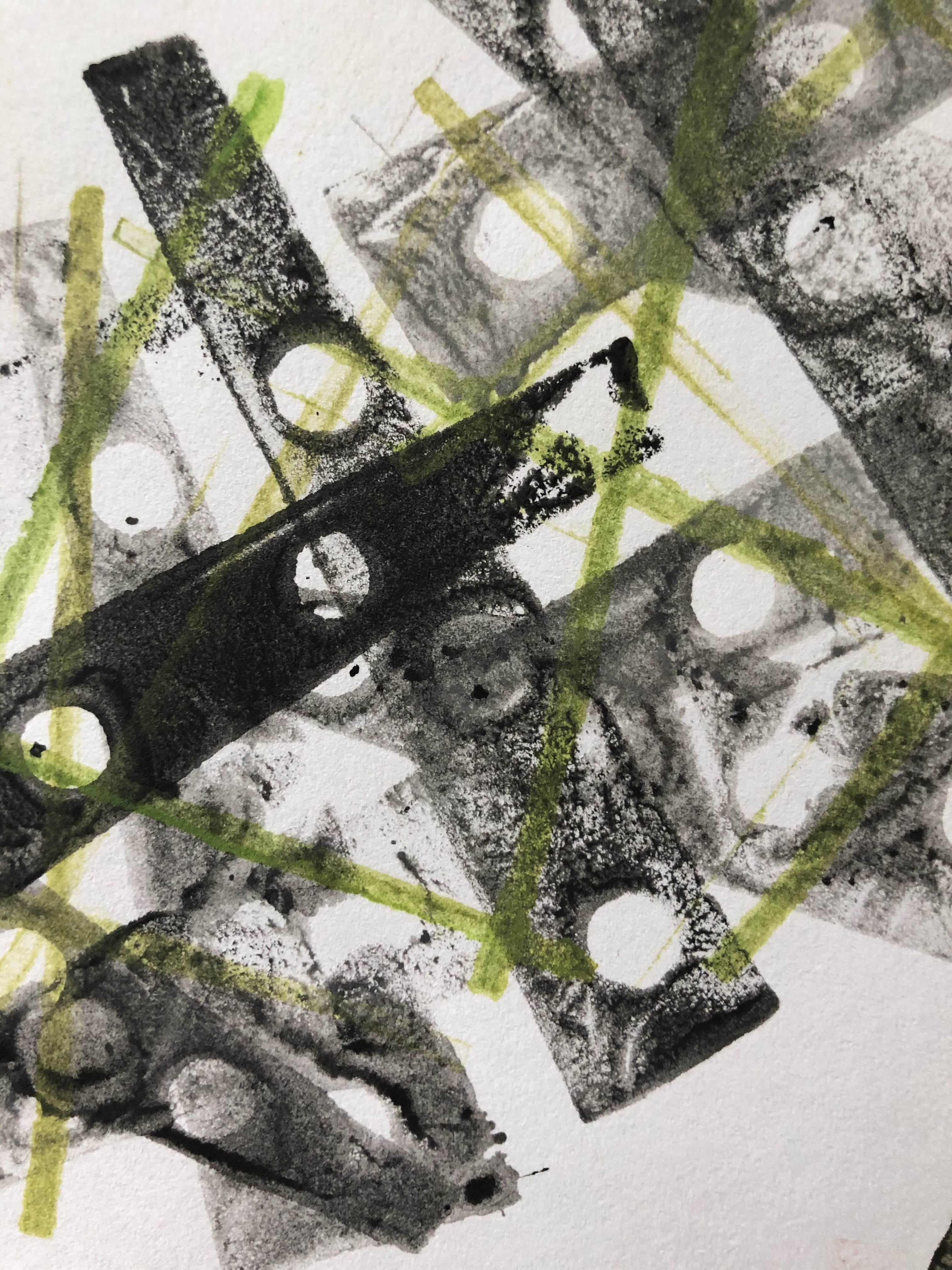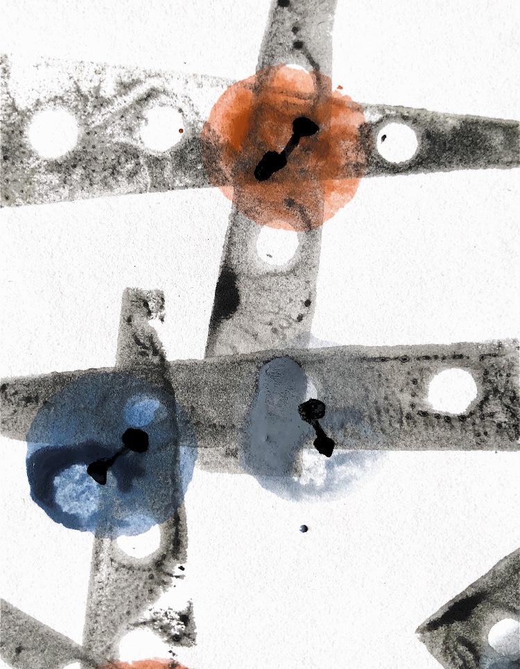 Printing on watercolour paper, repeated images and partial prints.
