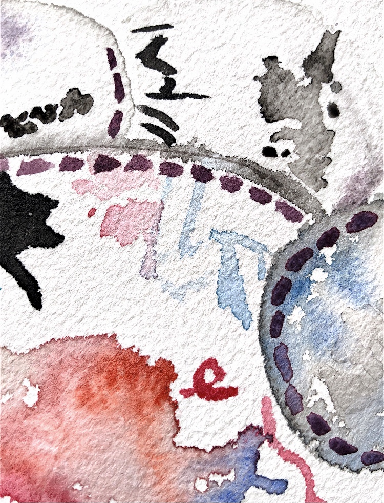 I did a quick sketch and painting of this sample which I zoomed into to make ideas for printing and patterns for future work.