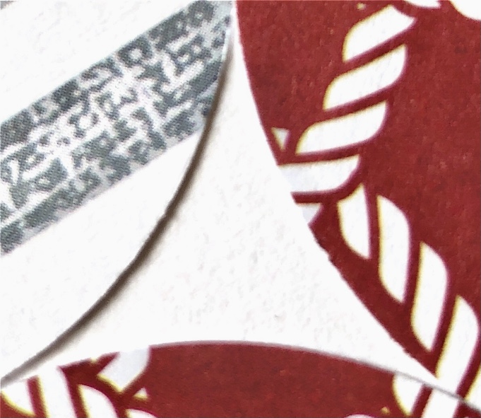 Sample 5 was wrapped in red/black shot organza. The solid textural paper contrasts with the sheer, shimmery organza, tied at the top, giving the appearance of a wrapped present secured with a bow.
