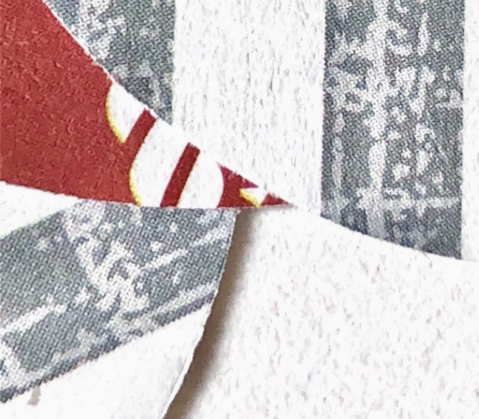 The first thing I thought of when I saw this was -‘what a lot of fabric!’. Even with pre-cut and sewn pieces, there is still a huge amount of gathering, creasing, crumpling, folding and arranging going on here. The red rope stands out and appears to be tied rather haphazardly, with knots showing and little pattern or symmetry. The figure can still be made out under the fabric and it looks as if it has been wrapped in a shroud – suggesting a reverence for the figure underneath.