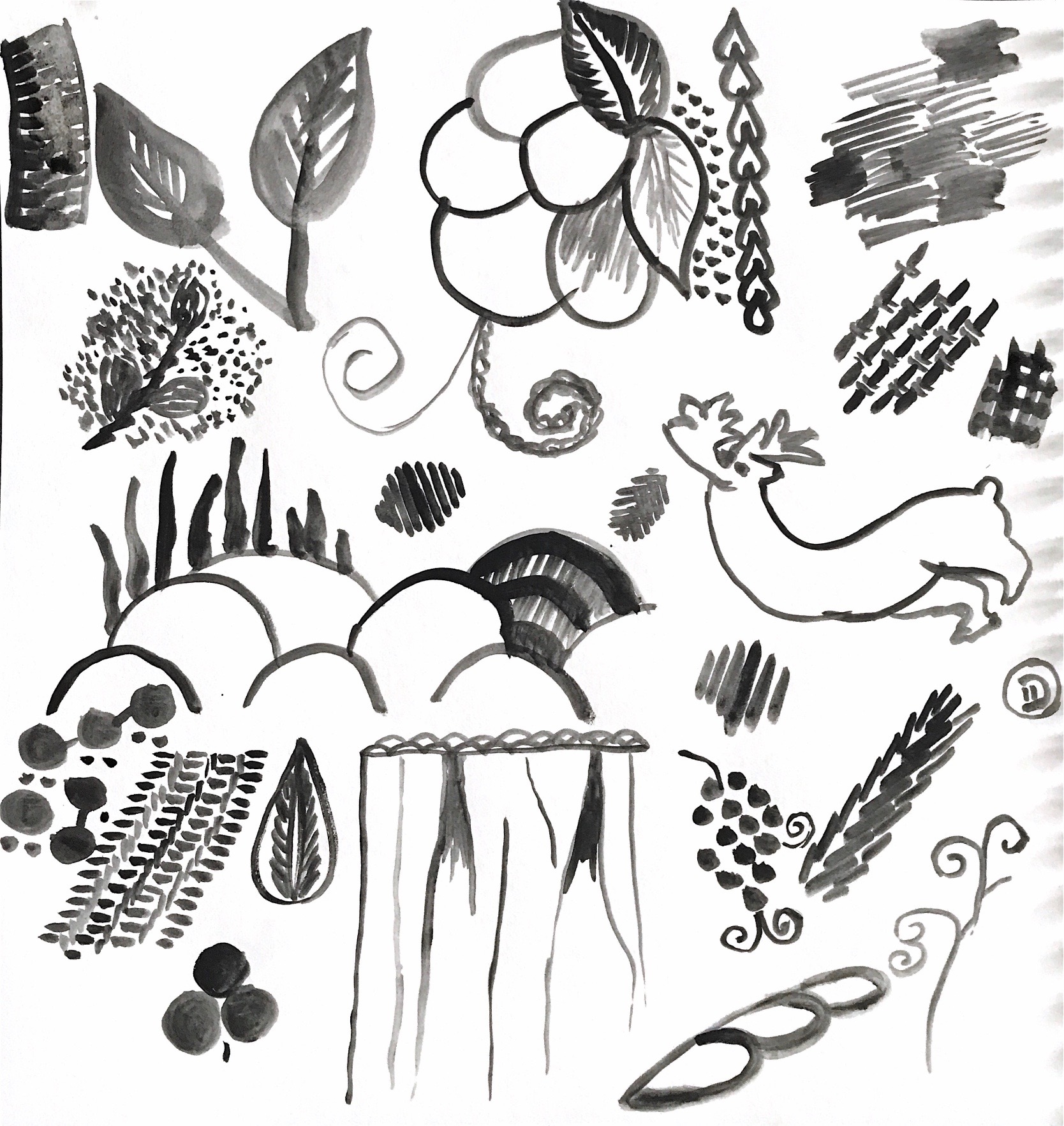 I have tried some iPad drawing based on my previous studies of archive textiles.
