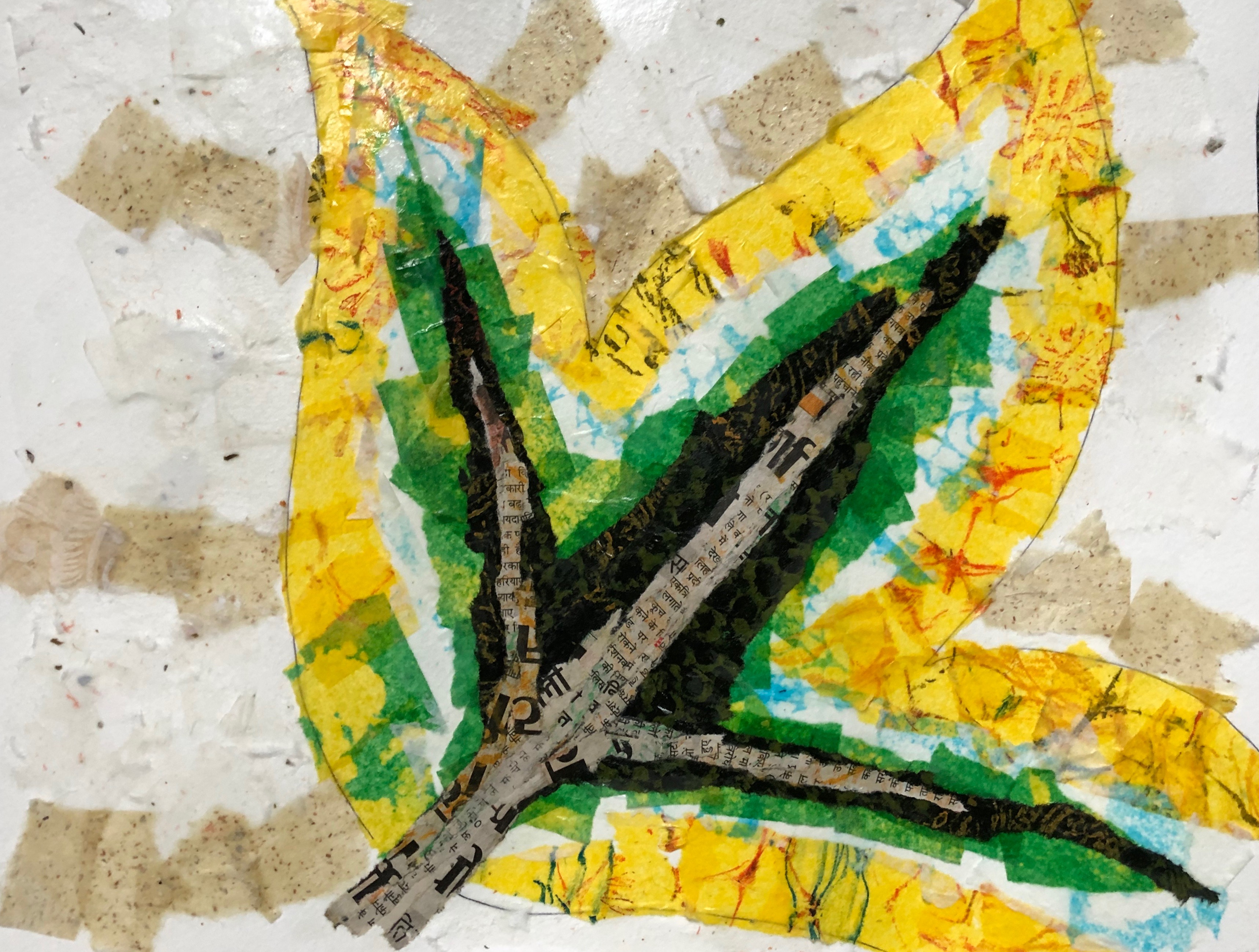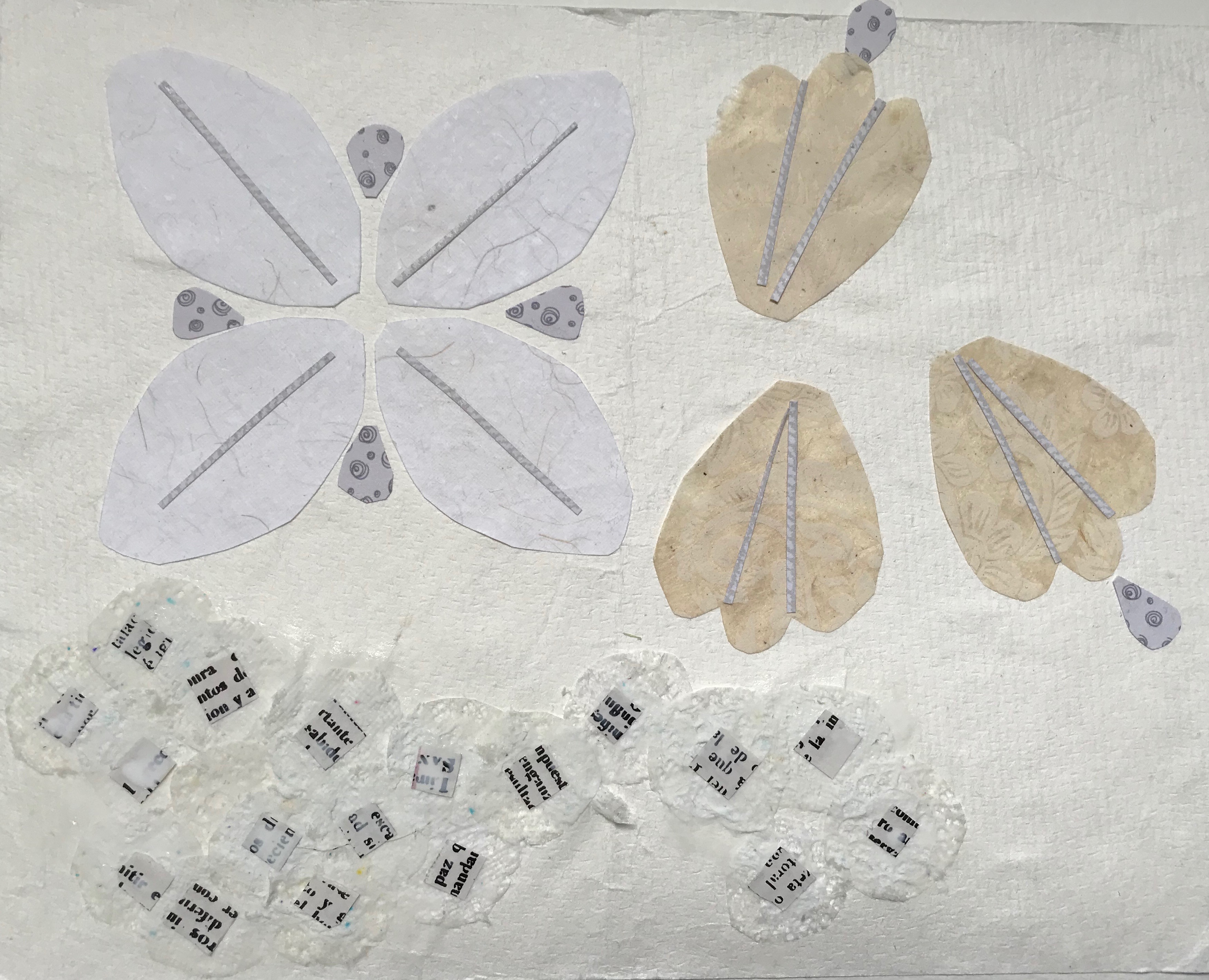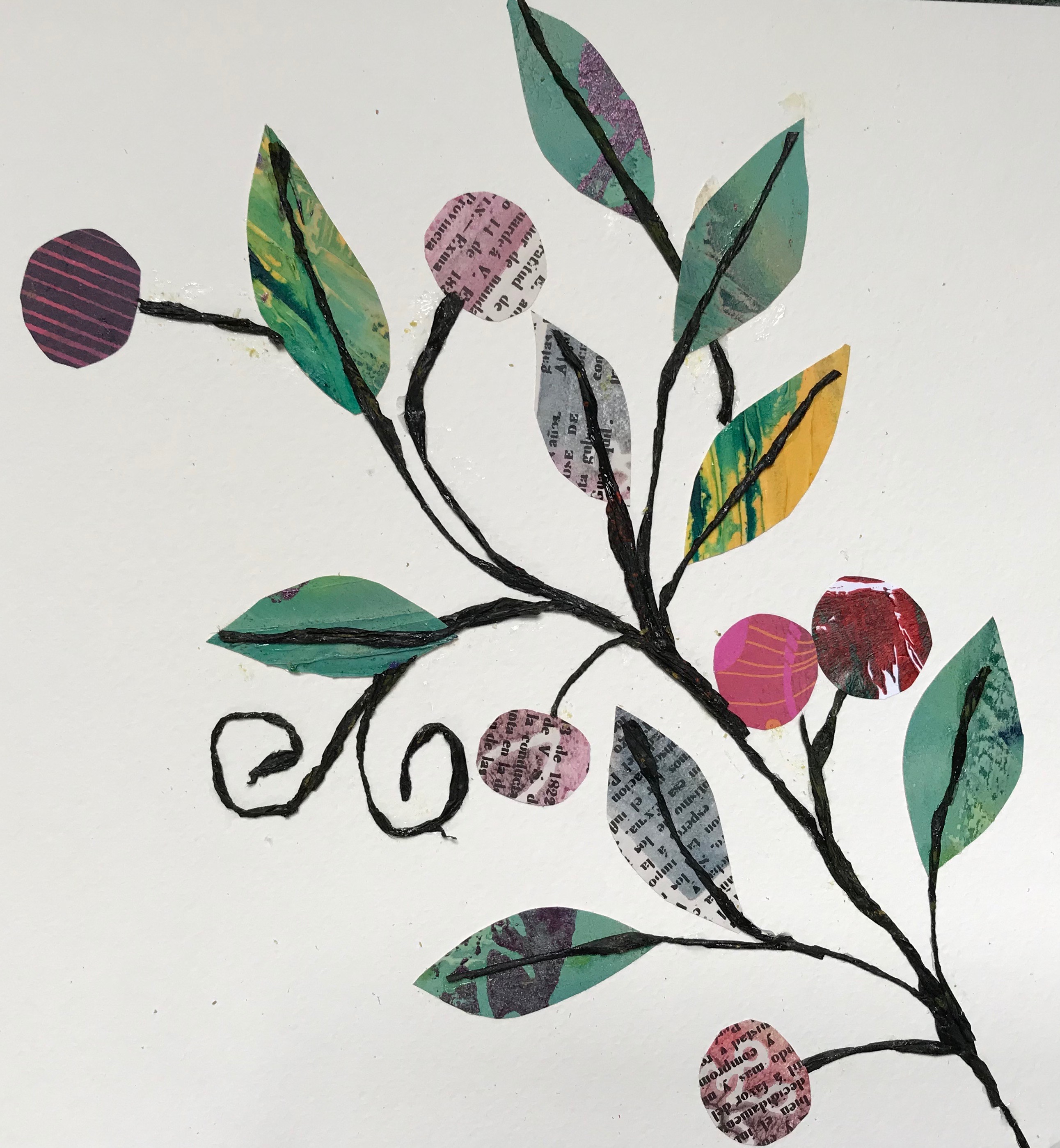 Tree of life bedspread using coloured book pages and rolled paper Tree of life bedspread – leaf – using narrow strips of coloured book pages and hand made paperWhitework collar using commercial papersTree of life – leaf using newspaper and coloured tissue on hand made paper