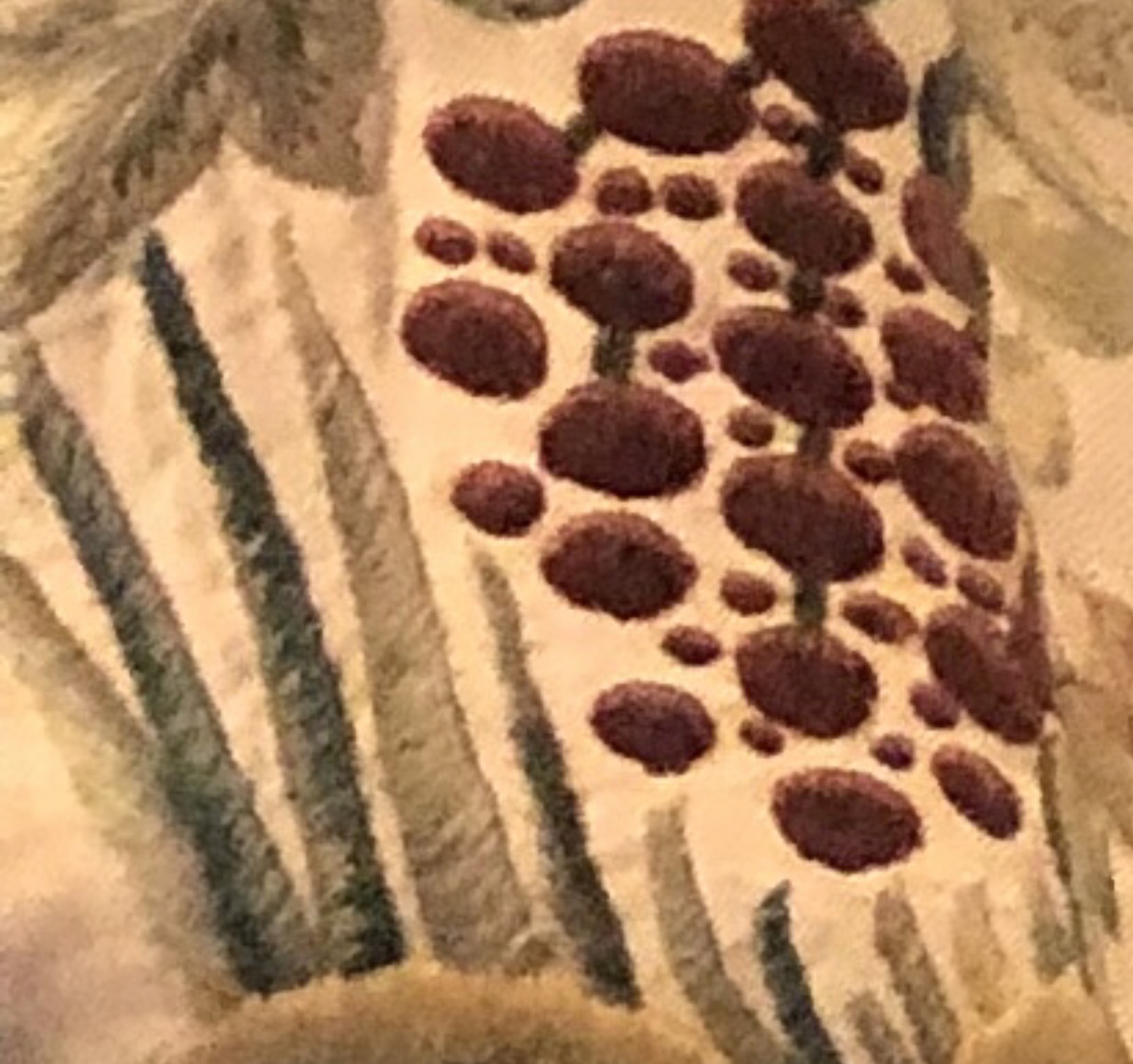 Detailed notes of colours on an original William Morris drawing for a wallpaper repeat pattern.